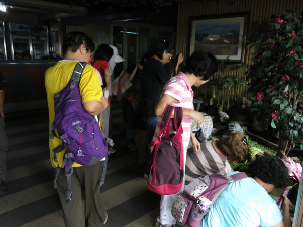 最佳集合點,也是減輕背包重量的起點,葡萄、水梨、小番茄,連酸梅也來絕配,阿伯念念不忘的是還有誰沒吃到搭機來台的巧克力?