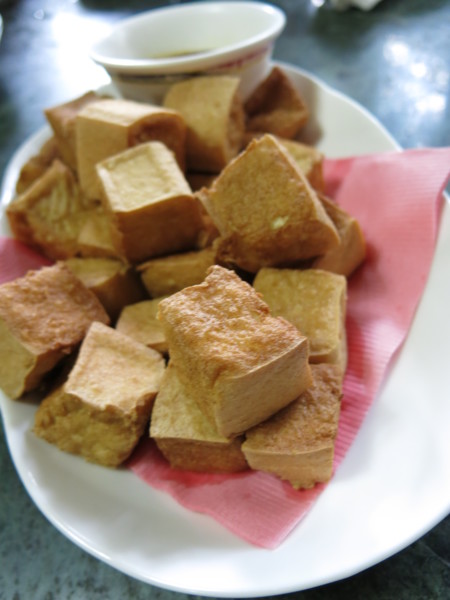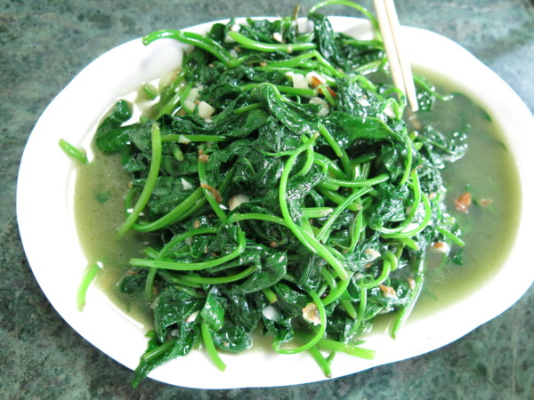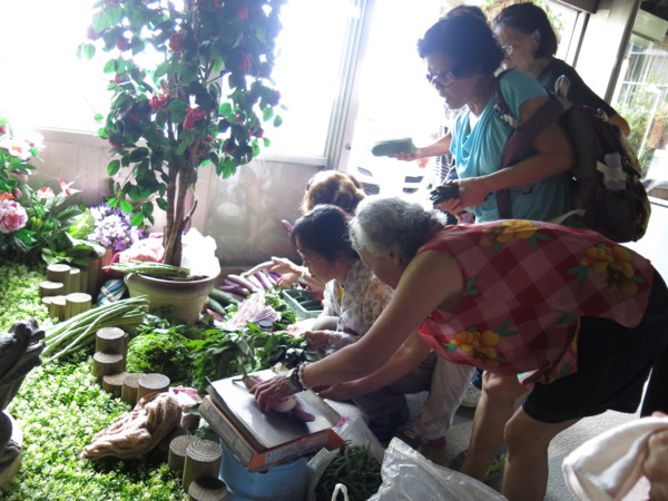 三、快樂午餐在六窟:六窟的午餐,盤菜量足,青菜多樣,活魚尤其遠近聞名,不過青菜才是我們的最愛;大夥一到,菜攤旁堵滿了人,財源利市,好熱鬧。