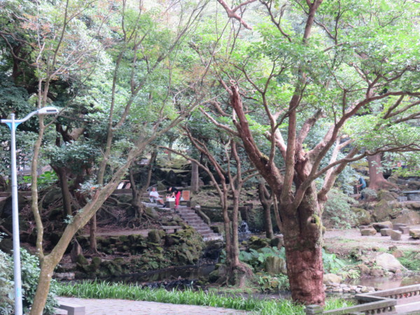 今天的集合出發點是在前山公園磐流園。一下車就可聞到陣陣的硫磺味,特殊的硫磺泉水造就了兩座「公共男、女湯屋」,這種浴池還沿用日語命名,可見其歷史之久遠。公園內古樹林立,早為一群早起民眾據為休閒聊天、跳舞之處。