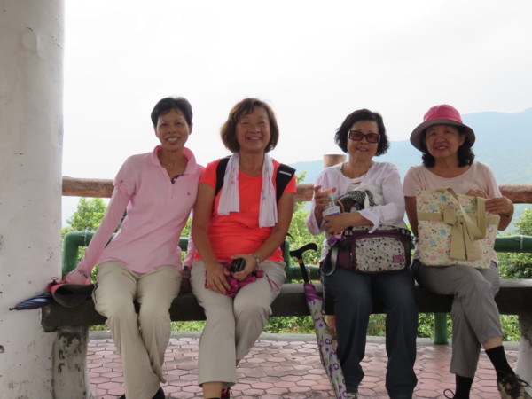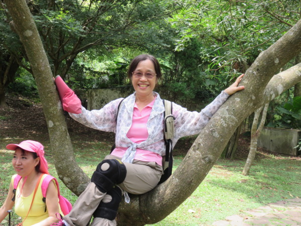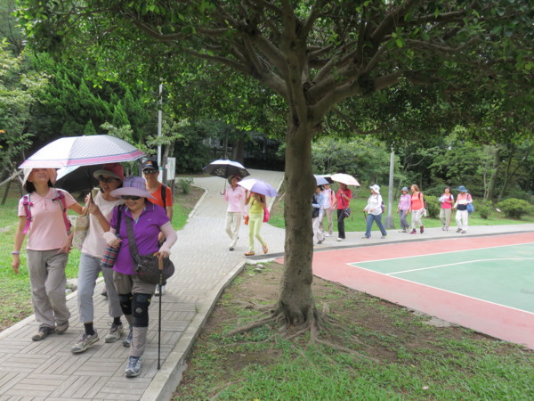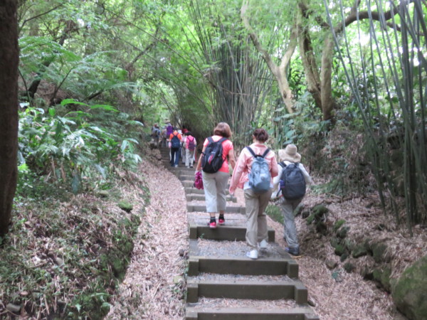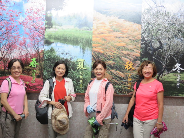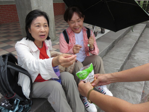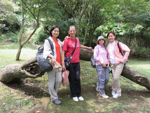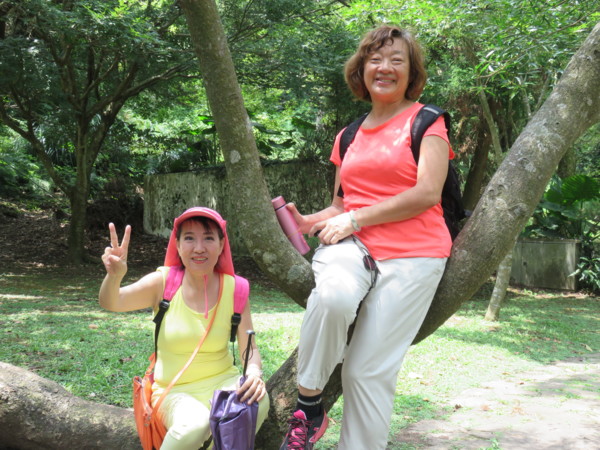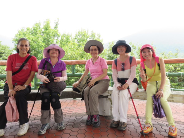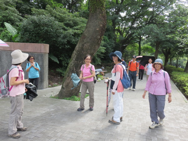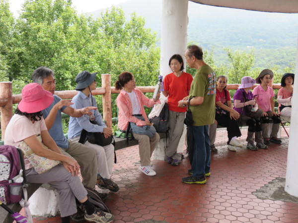 片刻後,再從第二停車場邊的步道往陽明公園前進,中途在觀景台休息時,採綢與苔伊兩位國文老師竟詩興大發,問起「四時佳興與人同」的上一句,就在眾人不解時,進豐說出「萬物靜觀皆自得」,立即贏得眾人喝采,採綢還誇進豐是「腹有詩書氣自華」,讓今天的登山健行運動硬是添上幾許文學氣氛。