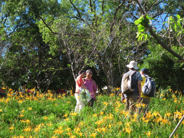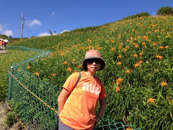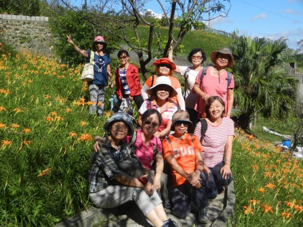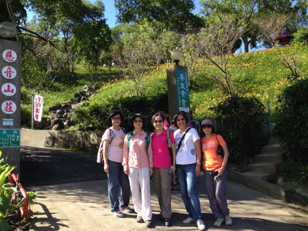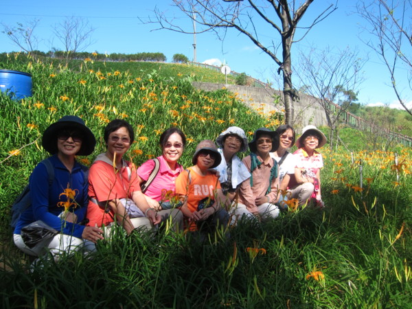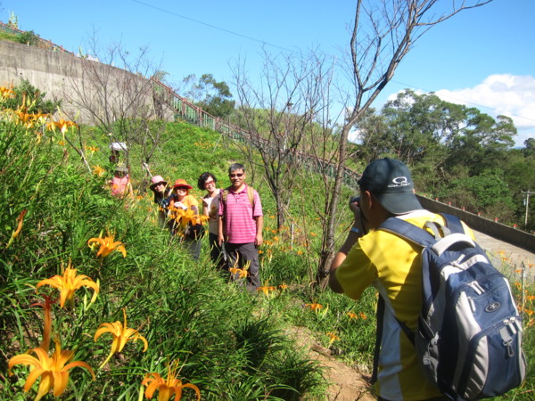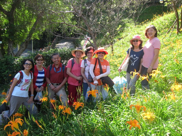 曾經,遠征花蓮遊賞金燦燦的花海,沒想到台北就有縮小版的六十石山。謝謝如美推薦、桂枝規劃的花間行;四部滿載笑嘻嘻的車子由偉文和桂枝領軍,在捷運動物園站會合後,逕馳往木柵,金針花海就隱身於老泉里中。