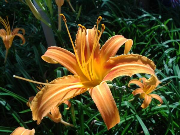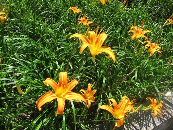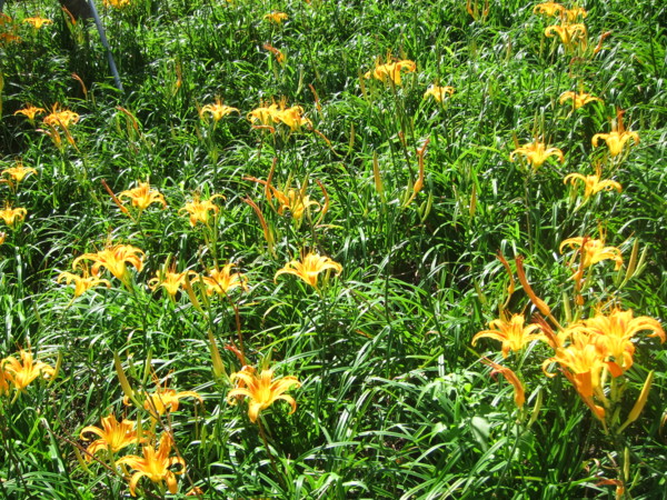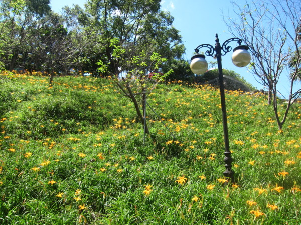 金針花在正午的陽光下黃得發亮。