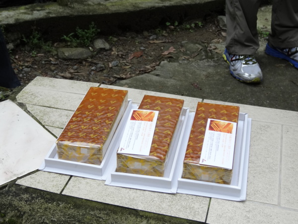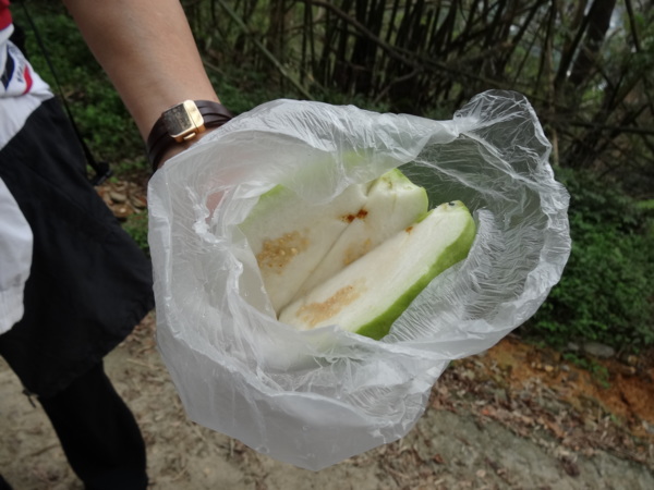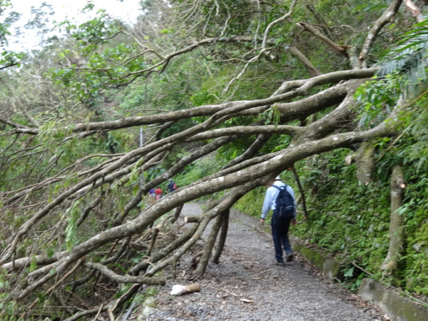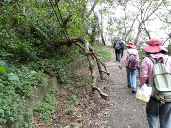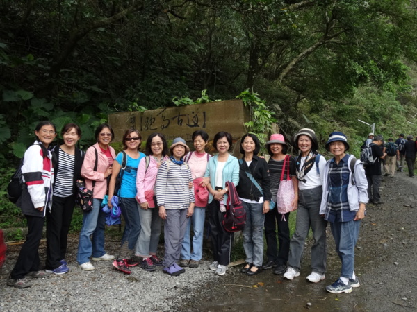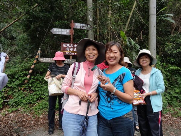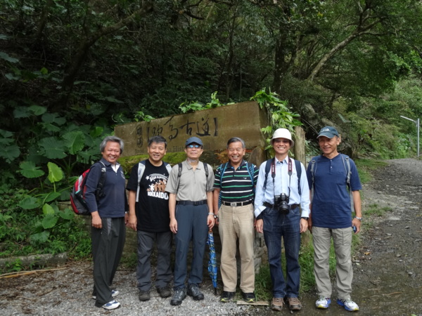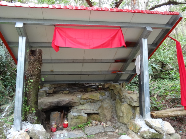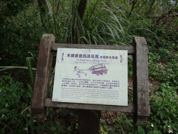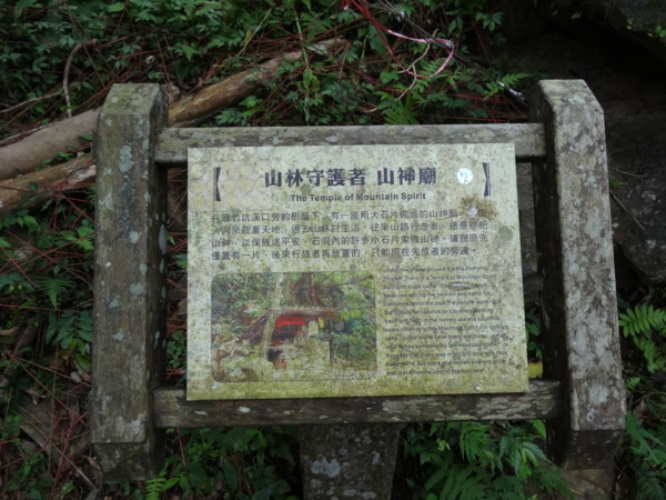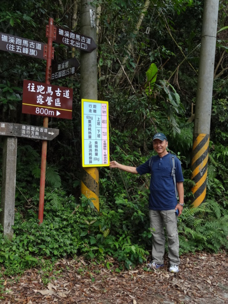 四.足跡:8:30石碇休息站集合--9:15抵礁溪跑馬古道南入口展開健行--9:30十一股溪畔玉龍居涼亭前品嘗阿默千層蛋糕--9:46叉路指示牌人馬分手--木馬及木馬道(已毀)--景觀平台(已毀)--10:20山神廟--10:37猴洞坑溪--10:43上新花園折回--11:30離開南入口--11:50抵達滿意樓全員會合午餐.