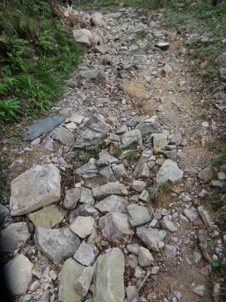 這1段泥土被沖刷.參差石頭露面實在不好走.