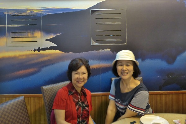 餐廳背景的壁畫美極了。姑且照兩張吧