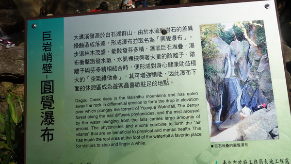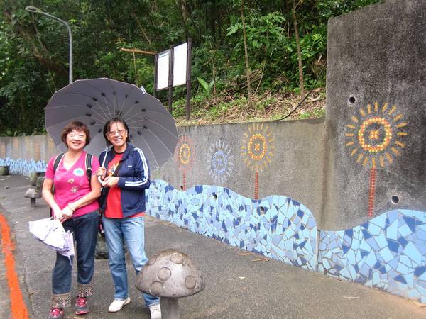 再往上一層,有兩個菇狀的涼亭。附近可看到圓覺瀑布