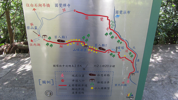 健行路線:捷運文湖線大湖公園站1號出口--沿大湖山莊街直走至街底---大溪溝親水步道---圓覺寺步道---圓覺寺折返---途經葉氏祖廟---成功路自助餐