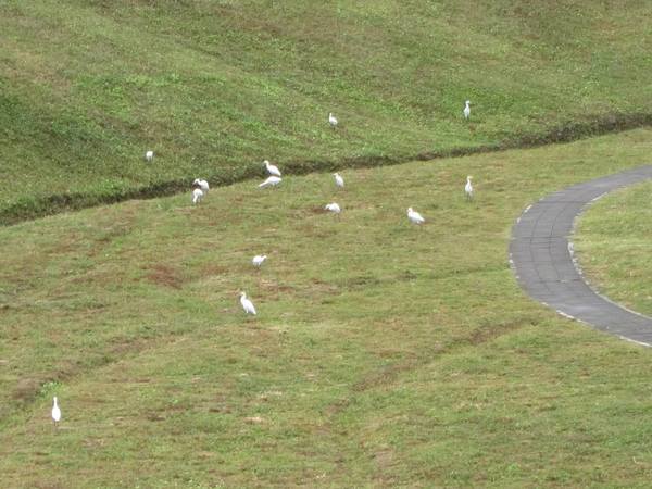 ㄧ群白鷺鷥鳥現蹤,好一個生態公園。