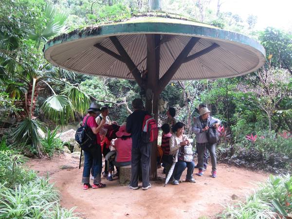 來到傘狀涼亭,歇歇腳,吃吃點心。