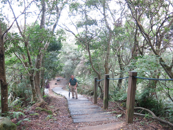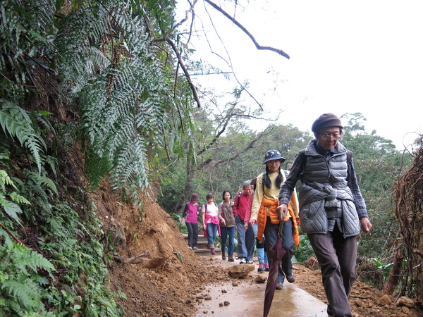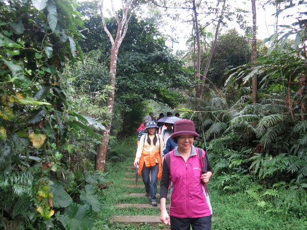 筆羅子步道枕木段接天然泥路,避開來時的陡峭攻頂梯道