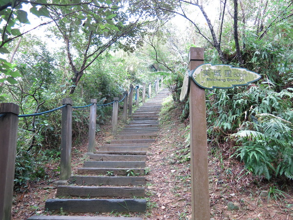 幸福廣場旁的登頂山口,開始進入枕木道