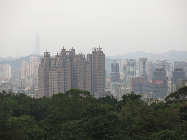 山頂的觀景平台遠眺新店碧潭及環圍的高樓大廈
