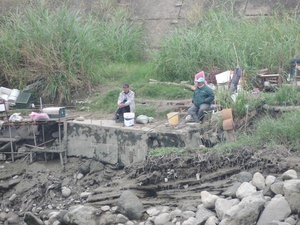 你沒看錯,真的有人在釣魚。此時不斷的看到有東西躍出水面,再仔細一瞧,原來有巴掌大的魚兒從水裡跳出來,可惜沒帶腳架無法捕捉畫面。真的,整治過的新店溪在沒有以前的惡臭,水質也慢慢適合水生動植物的生長了!