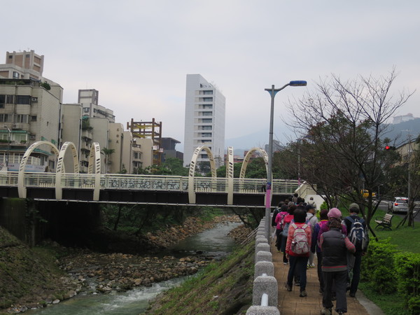 磺溪彩虹步道在2013/5/20曾走過一次,那時是從建民橋出發,走左岸到天母公園,返程走右岸回到明德站。這次雖少走了建民橋與華興橋之間的紅、橘、黃色路段,卻增加了慈悟寺與猴洞產業步道,可見星期一笑嘻嘻是越老步伐越輕盈,也就是成語說的老當益壯啦!