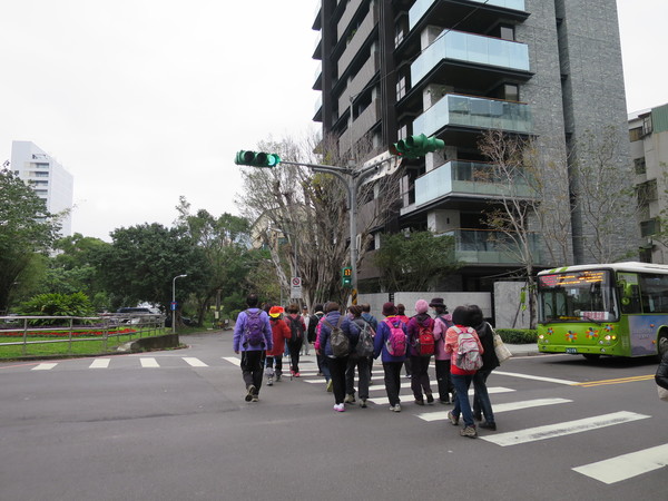 健行路線:明德捷運站→榮華公園→過華興橋到左岸→(綠)→木便橋→(黃) →天母橋→(紫) →同行橋、磺溪橋 →天母公園→中山北路219巷→鬼店→猴洞產業道路→慈悟寺→猴洞產業道路終點涼亭→(折返) →宋江餡餅總店用餐。