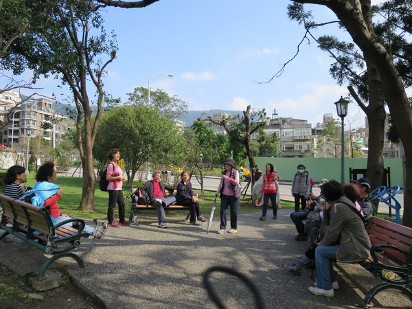 ↑抵達天母公園小憩吃零食,郭總戲稱我們與星期三團已難分軒輊