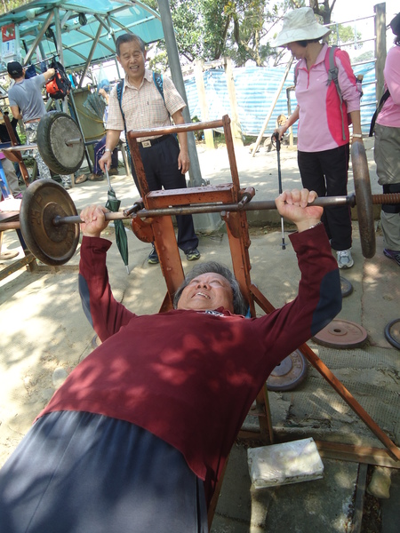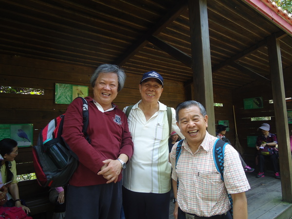 泰山山頂上三個快樂老男人,二位泰山,一位公公。