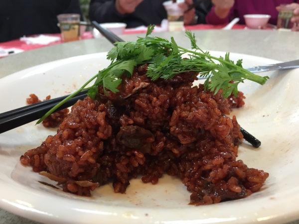 紅麴糯米飯吃了大半才想起要拍照。
