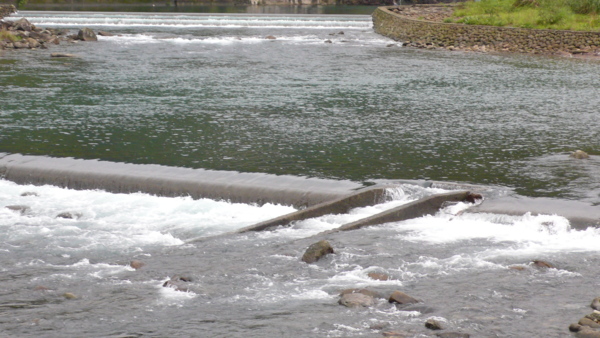 北勢溪上每間隔一段距離即見一側設有魚梯。