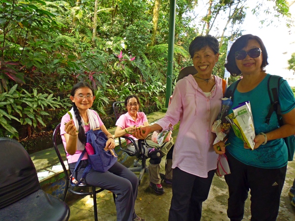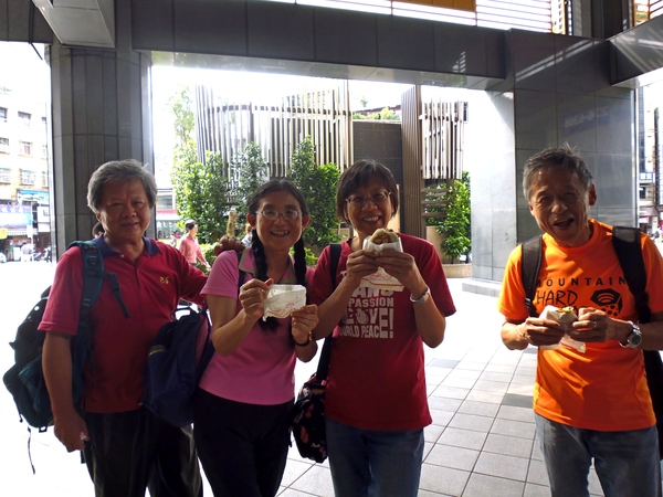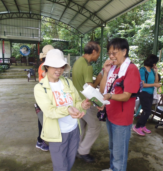 終於坐下來了,大家分享著苔伊的梅精、蔡薏的開心果、寶貴的毛豆、大美雲的小番茄,不亦樂乎