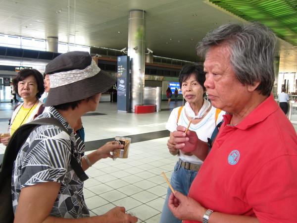 這是星期一笑嘻嘻團隊第一次搭高鐵遊覽,夥伴們大多已有資格購買敬老票,但仍有少數團員有待歲月催老。其中玟瑛更只差一天,高鐵公司堅持以身分證登記日為依據,不過玟瑛仍很高興地買下全票,留下來當紀念。