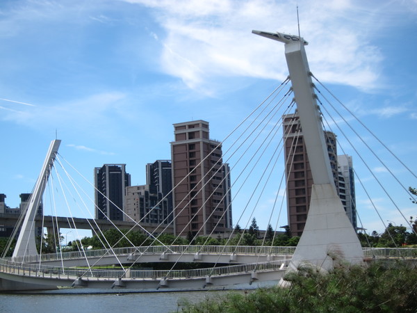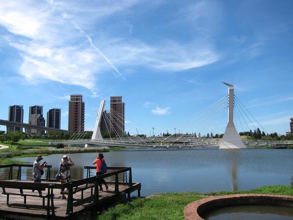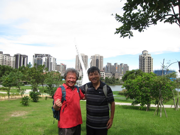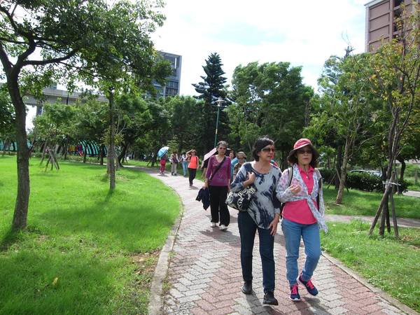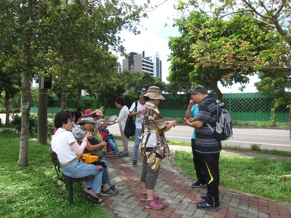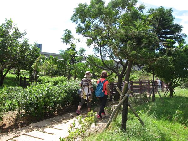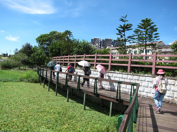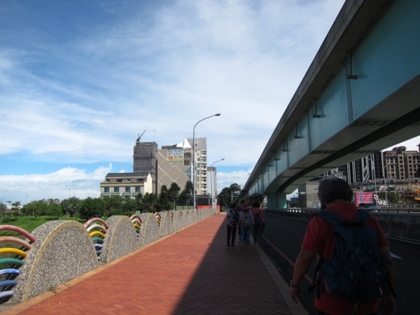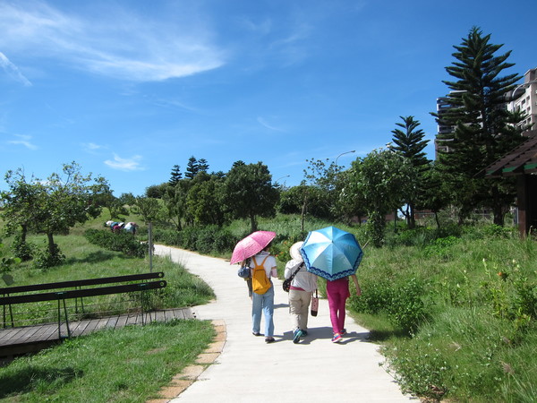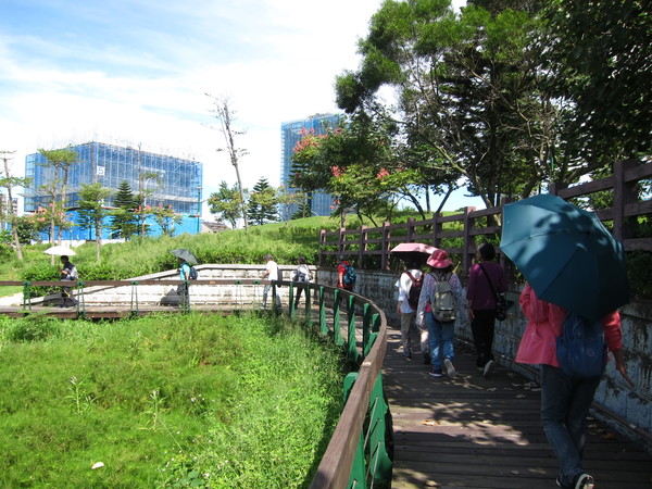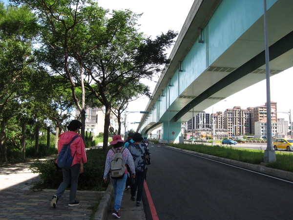 昨天氣象預測今天應是多雲時陰的天氣,不過走出高鐵桃園站後,迎接我們的卻是個艷陽天,氣溫至少30度以上。幸好沿著高鐵南路,一路上有桃園捷運高架路段幫我們遮蔭,伴著陣陣的涼風,很輕鬆地走到了青塘園。