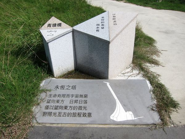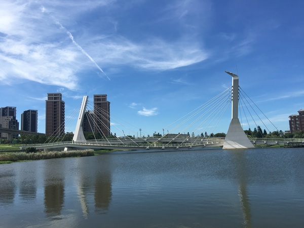 2015年雪白色的「青塘園景觀橋」建造完成,在夜晚投射燈光中營造出浪漫的氣氛,更可透過橋上的「永恆之塔」對著北極星射出光束,表達「永恆」概念,是青塘園不分晝夜的新亮點。(以上取自桃園觀光導覽網)