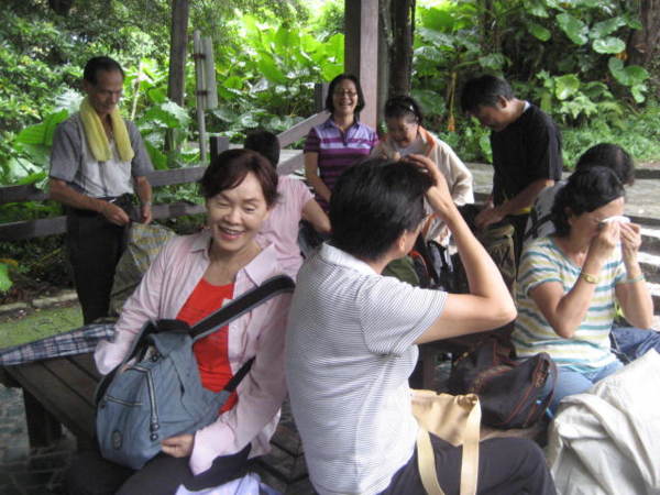 天母後公園,木橋上12人+攝影者。歷來,最短隊伍,一覽無遺。
