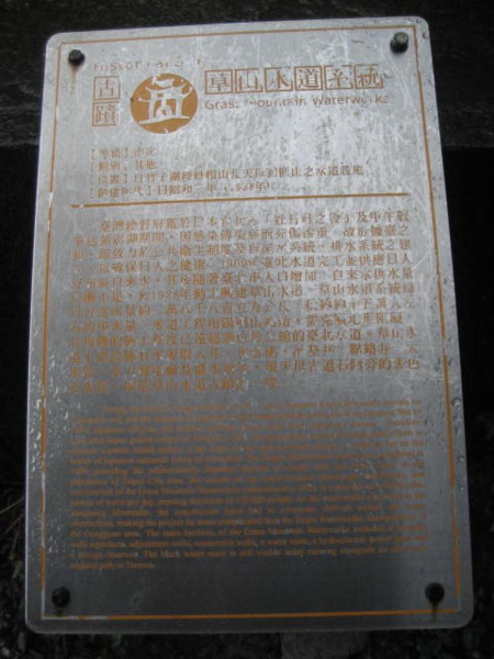 草山水道,寫著日人在瘴癘之氣的台灣架設的乾淨水源。