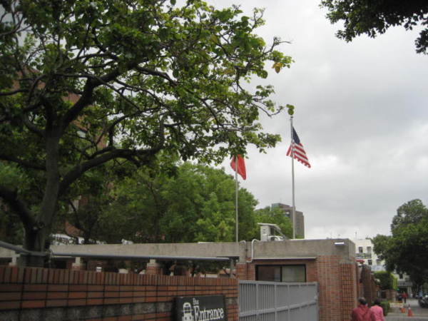 中華民國的土地上,飄揚著星條旗,小部分占領吧。對街是日僑學校,不見太陽旗?
