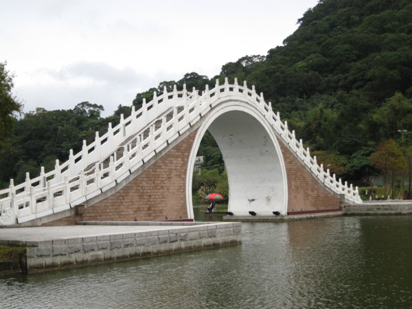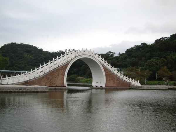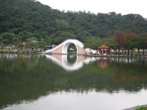 長年映影湖光的拱橋陪著四季變化出風雨晴日的風景