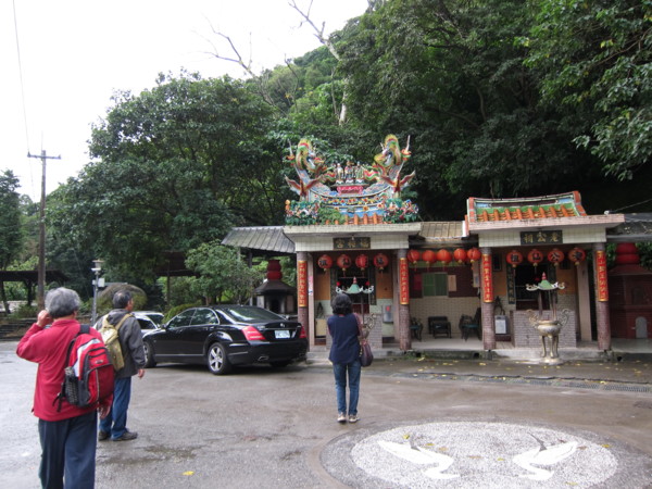 右彎進入一片濃密清蔭,前為老公祠福德祠雙廟庭,至此環湖一大圈