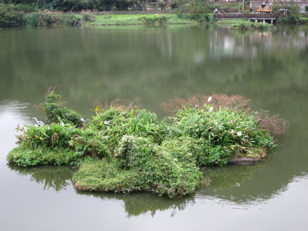 環湖欄杆刻鏤著禽鳥以突顯大湖特色