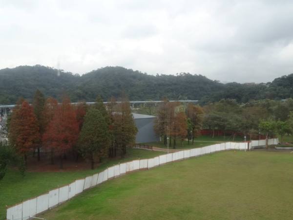 由大湖公園外欣賞正在華麗變裝的落羽松