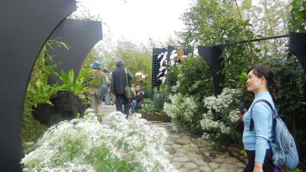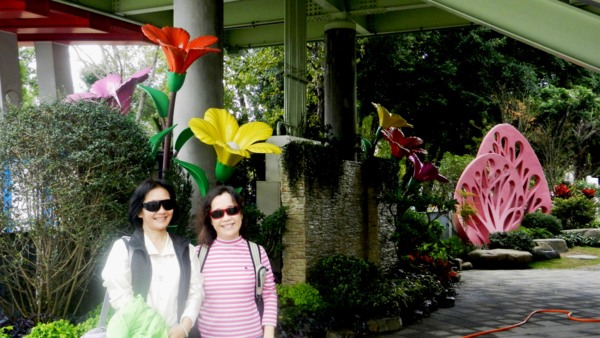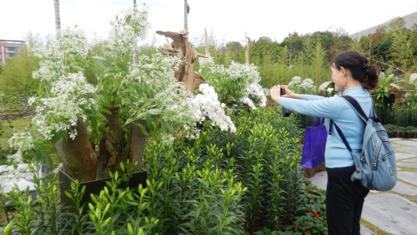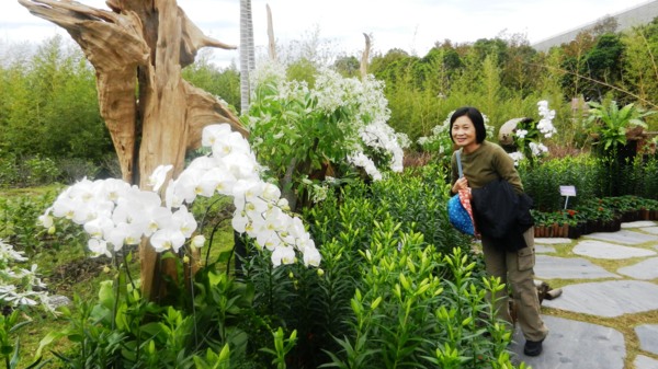 還好我身邊還有這兩位美女,陪襯那潔白清雅的蘭花,一起入鏡。