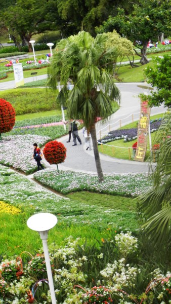 難得又是笑嘻嘻活動的早晨,老天爺一掃幾天來的陰霾,喜孜孜的露出了笑臉,大夥兒一進入花博園區,看到藍天白雲下,一場優質的花卉饗宴正迎接著我們,心兒也跟著雀躍了起來!