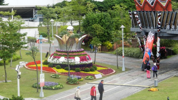 進入美術館園區,就是濃濃原民味的原民風味館,繽紛的造景讓大家的相機閃個不停。