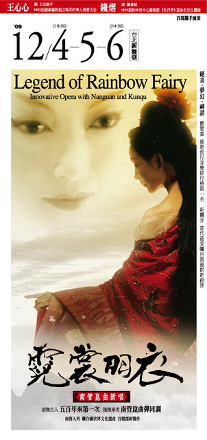 南管與崑曲兩種年齡超過五百年的人類音樂遺產,即將於十二月首度同台,由南管名家王心心與旅美崑曲演員錢熠攜演出《霓裳羽衣》,兩岸前所未有的南管與崑曲跨界同台,號稱是兩種音樂「五百年來第一次」的合作,成為台北藝文圈年底的重要盛事。