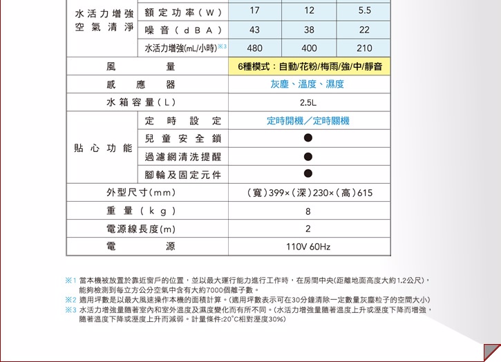 強調安靜無聲 且有空氣品質指示燈 算是比較特色的地方