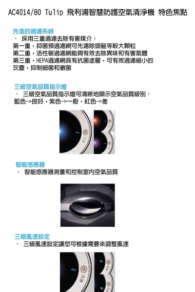 個人覺得空氣清淨機除塵還是要靠濾網最實在,飛利浦AC4014的過濾效能是比較強,最高可過濾0.02微米細懸浮微粒,另外最高可濾除99.9%細菌病毒、甲醛與甲苯,只是定期換HEPA濾網是必要的。