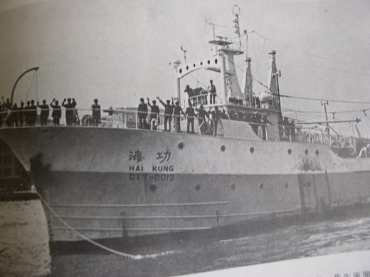 於是﹂海功號」啟航了,船上有船員及研究員30 人,漁業專家四人及中國時報記者蔡篤勝,聯合報記者呂一銘及中央通訊社記者胡宗駒,合計37人。