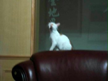 只見櫃臺上站著一隻背影酷似X小姐ㄟ小王子滴貓咪。
