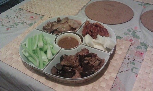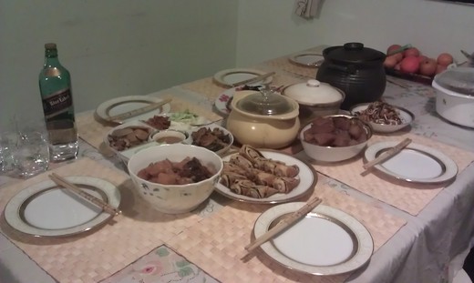 除了老媽和四姐帶來的菜,所有的菜都是老婆做的,老爸對這些菜都讚不絕口,因為頗有家鄉味。看來老婆已經出師了。