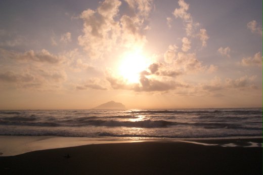 清晨悉微的光線中飄著細雨,浪濤沙灘鳥叫蟲鳴,就是等不到我們想要的日出,只見海上一抹失望的殷紅。沙灘上找不到靈感,終究在雨中告別牛山,不敢想下次何時再來造訪這個東部的小地方。不希望再看到殺野牛的血腥,那是上次走上坡道在路旁小發財車上看到宰下牛頭的慘狀,小村莊仍有殺戮,這也算物競天擇嗎?