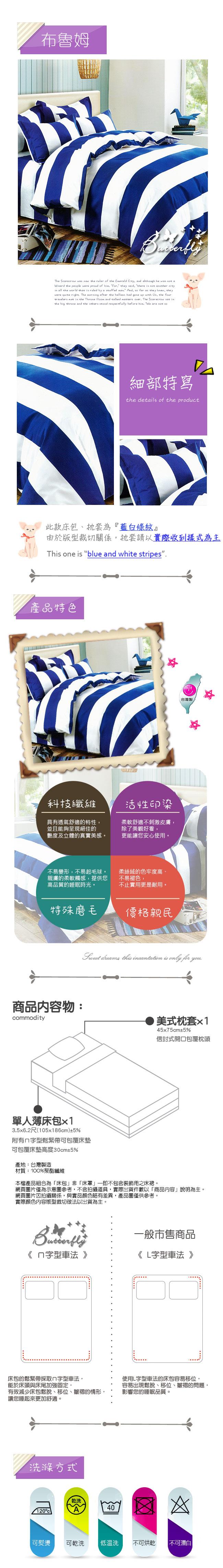BUTTERFLY 柔絲絨單人薄床包 單件含枕套 【布魯姆】