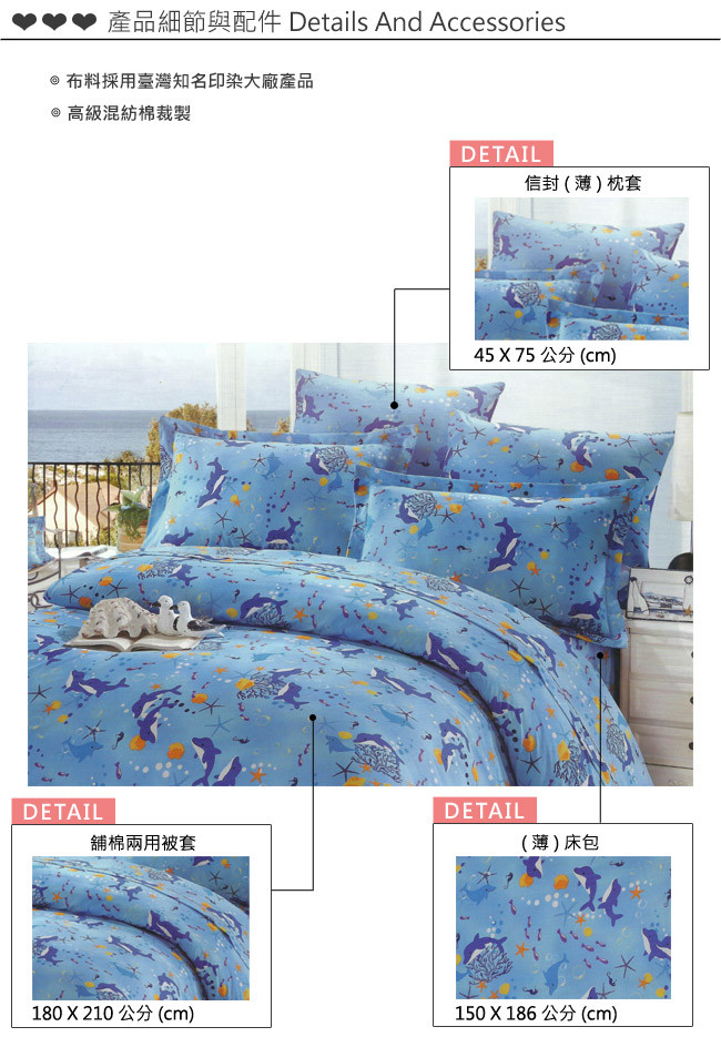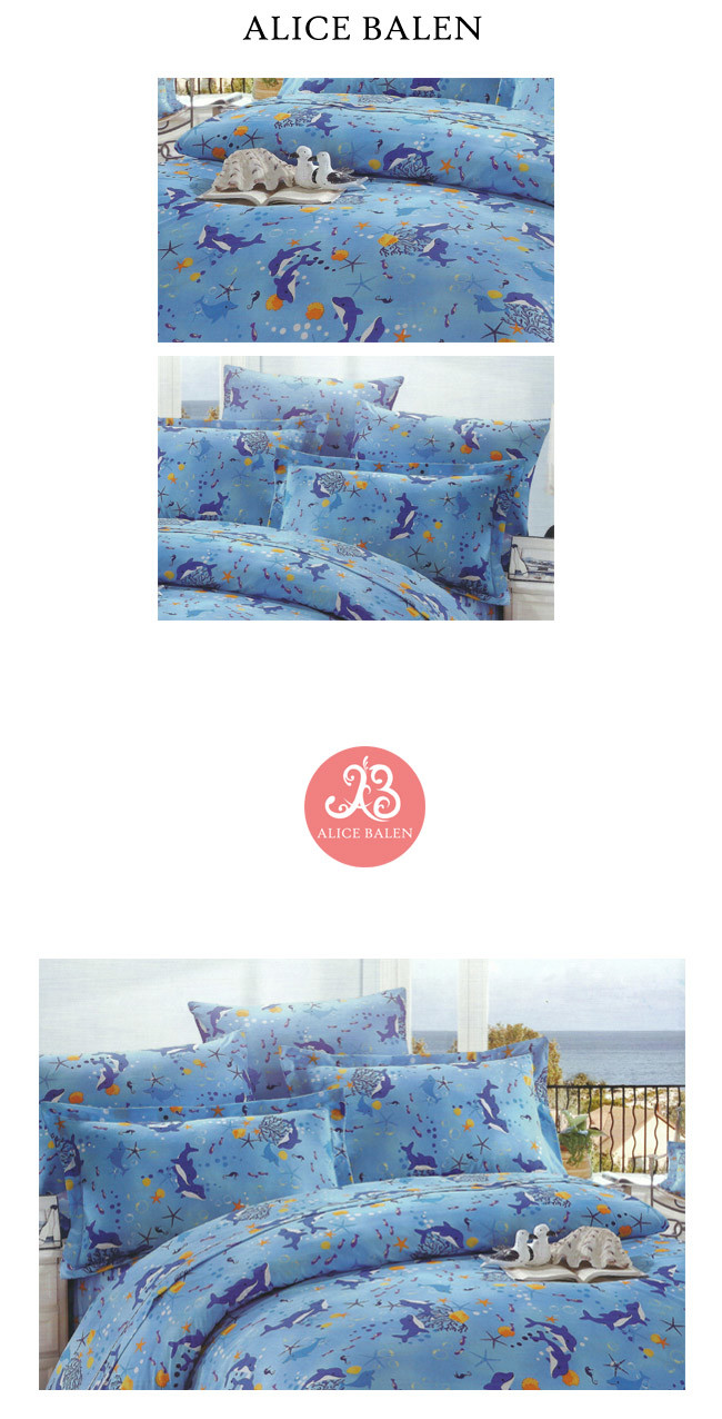 床的世界艾莉絲-貝倫 海豚之戀(5.0呎x6.2呎)四件式雙人(高級混紡棉)鋪棉兩用被床包組(藍色)