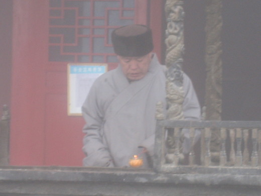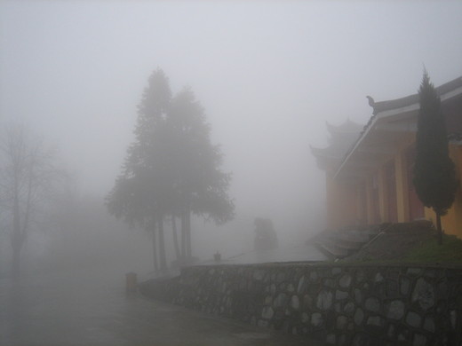 站在雲霧飄渺.攝氏一度的禪寺中.