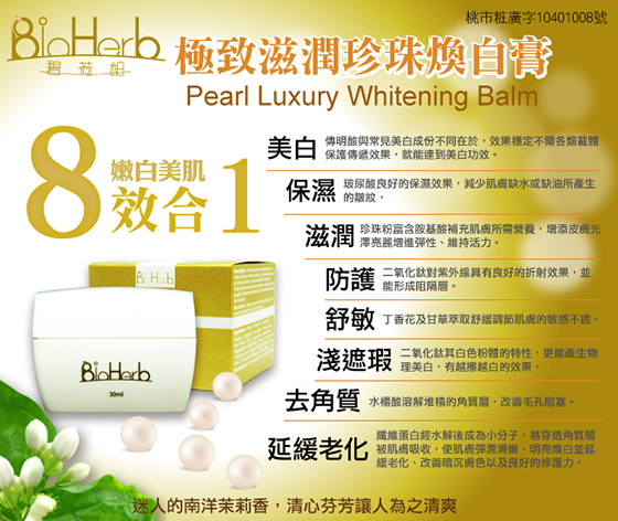●【BioHerb碧荷柏】極緻滋潤珍珠煥白膏,最低一瓶只要298元!