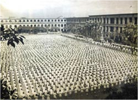 附上一九六六年老松國小每天朝會的照片,請大家看看,那老松國小的教育人員,能夠在每一天早上,極快速的把萬名以上的小學生,整整齊齊的排隊排好在操場上,參加升旗典禮,然後又極快速和有秩序的讓這些千奇百怪,來源不同,素質不一的小孩,回到該回去的所謂教室。