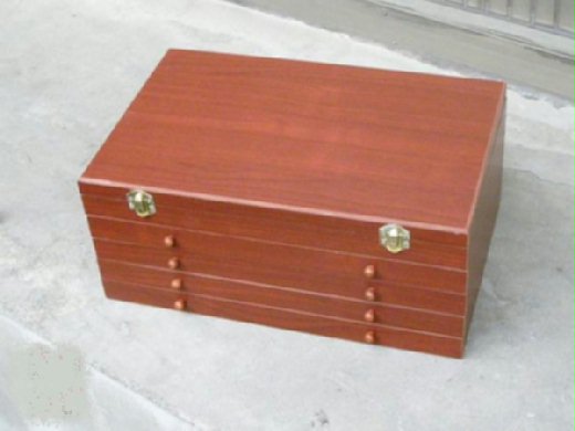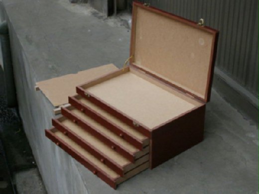 很基本、沒有花俏外觀(造型、彩繪、雕刻、裝飾等)的抽屜式木箱,完全沒有設計的外觀說穿了....是有點醜......但是,我就是要簡單!況且這樣若想自己做變化也方便些呀~(如果夠勤勞的話啦...)